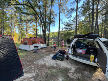 Setting up camp to live in the midst of the magical pine trees that create Angelina National Forest, is a memory we will never forget. From watching the little creepy-crawlies to feeling the fish that nibbled our toes all the way up to the sway of the tip-tops of the largest trees we've ever seen...the mesh of all these natural elements had us speechless and elated to be one with it all!